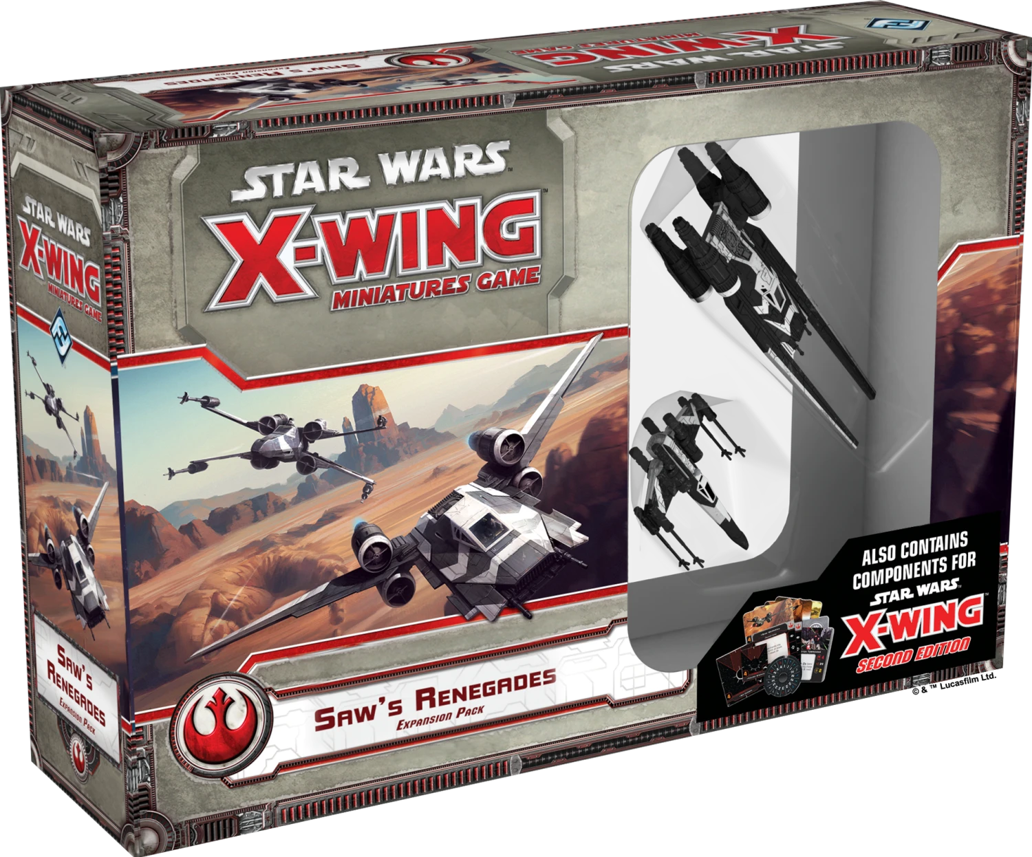 “Take the skies with Saw Gerrera and his renegades with the Saw’s renegades expansion pack! Rather than introducing completely new ships to the game, this expansion follows in the vein of the Rebel aces expansion pack and the Heroes of the Resistance Expansion Pack by introducing new versions of existing ships already in service of the Rebel Alliance. In this case you’ll find two new ship miniatures-a U-Wing and a T-65 X-Wing. Though the ships may be functionally the same as ones included in previous expansions, the Saw’s renegades expansion pack offers an assortment of ship cards featuring pilots from Saw’s motley band of warriors-or even Saw Gerrera himself, flying his powerful U-Wing into your battles. Along with new ship cards for both the T-65 X-Wing and the U-Wing, you’ll find an arsenal of fifteen new upgrade cards, equipping your squadrons with any number of unusual tactics or system upgrades.”