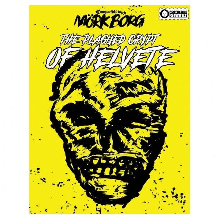 When a horrible plagued beast invades Galgenbeck, the party takes a bounty to seek out the source in the doomed forests of the north! They happen upon a disease demon and plagued crypt that may be more trouble than they’ve bargained for. A dark fantasy adventure inspired by MÖRK BORG’s black metal OSR ethos, THE PLAGUED CRYPT OF HELVETE is a one-shot third party adventure meant to introduce players to the RPG, but it can also be incorporated into an existing campaign. The Plagued Crypt of Helvete is a starting module which includes a market, mini-dungeon, new monsters and enemies, plagued beasts, and diseased demons. It’s a three-act adventure which can be played altogether or in multiple sessions — giving you everything you need to set the stage for a gruelingly grim and gnarly dark fantasy narrative. The module includes: three acts, which can be played in single or multiple sessions, a 3-page comic, diseased beasts and Plague Token system, a 36 piece random loot table, a 6 room mini-dungeon, as well as new enemies, items, and more! MÖRK BORG is copyright Ockult Örtmästare Games and Stockholm Kartell. The Plagued Crypt of Helvete is an independent production by Clipper Arnold and Polyhedra Games and is not affiliated with Ockult Örtmästare Games or Stockholm Kartell. It is published under the MÖRK BORG Third Party License.