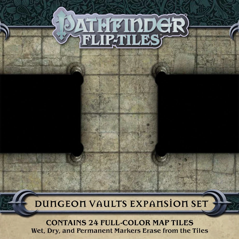 Some dungeons are vaster that others! Next time your players are ready to delve into the deeper levels of labyrinthine dungeon vaults, they won’t have to wait for you to draw every twisting wall and hallway. Pathfinder Flip-Tiles: Dungeon Vaults Expansion Set provides beautifully illustrated 6″ × 6″ map tiles that can be used to stock your dungeon with a variety of twists, turns, and oddly shaped rooms. Inside, you’ll find 24 richly crafted, double-sided map tiles. This expansion set, along with Pathfinder Flip-Tiles: Dungeon Starter Set, allows you to create massive dungeons with endless variety! So stop your sketching and start your flipping today!