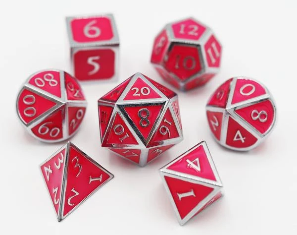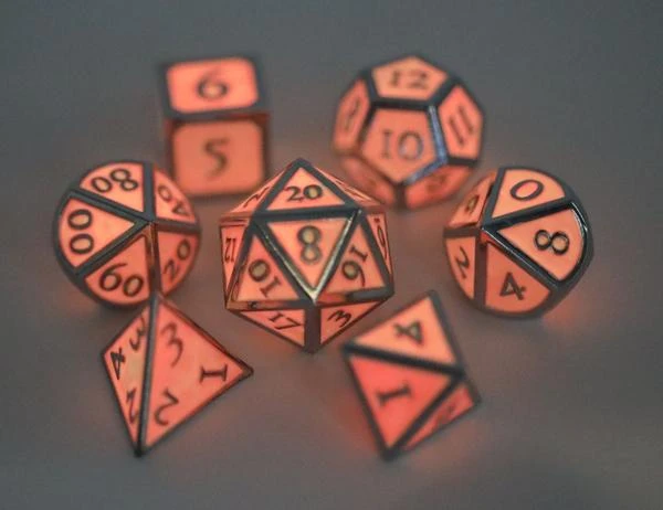 Contains a complete RPG Set: D4, D6, D8, D10, D1%, D12, D20Â