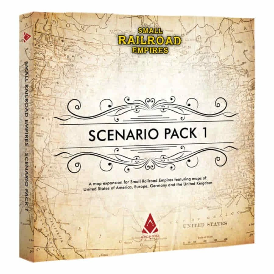 Expansion for Small Railroad Empires featuring Scenario Maps of: United States, Europe, Germany and the United Kingdom. Made in China.